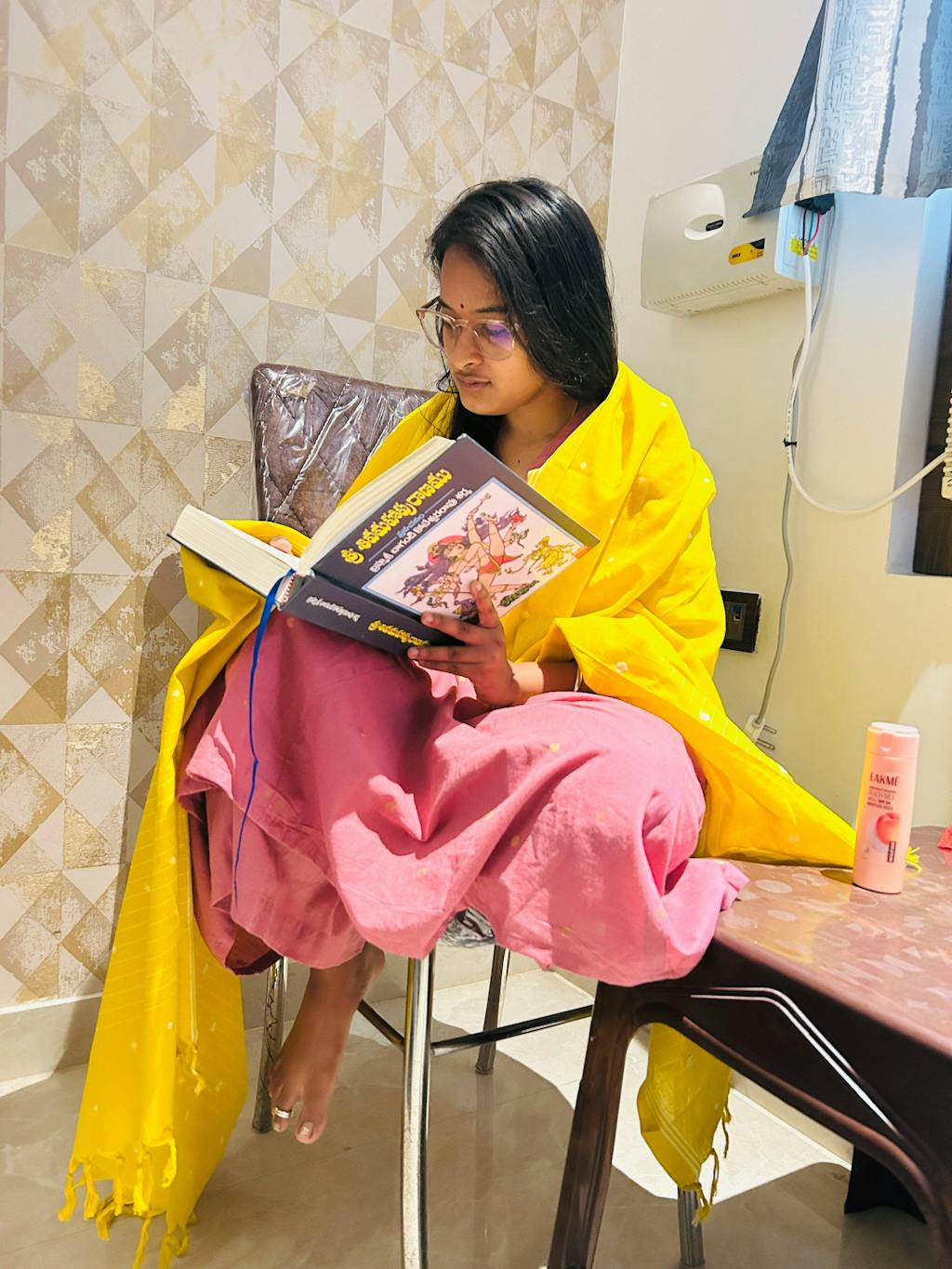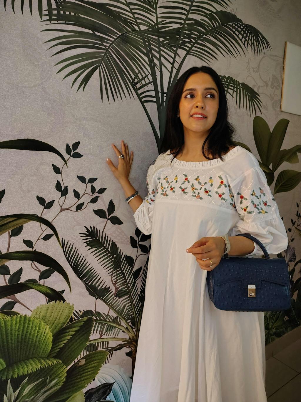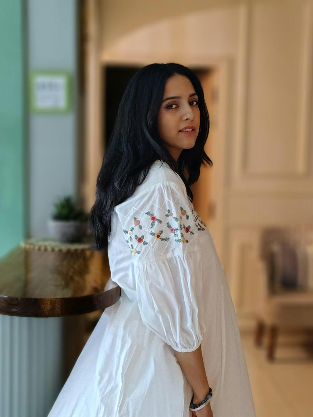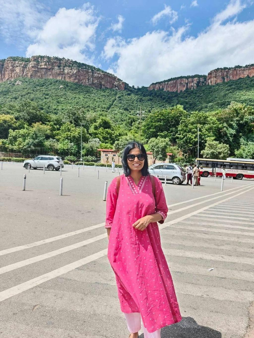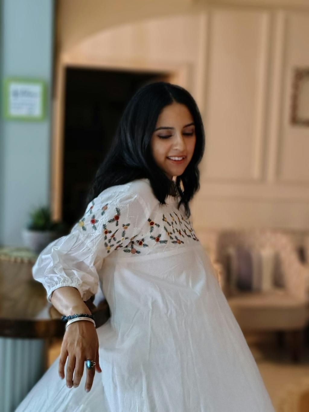 The Calla Lily Kurta Set comes in a soft mauve tone with a round neckline finished with a gentle V at the centre. The flowy A-line shape pairs beautifully with yellow striped pants for a lively yet balanced look.