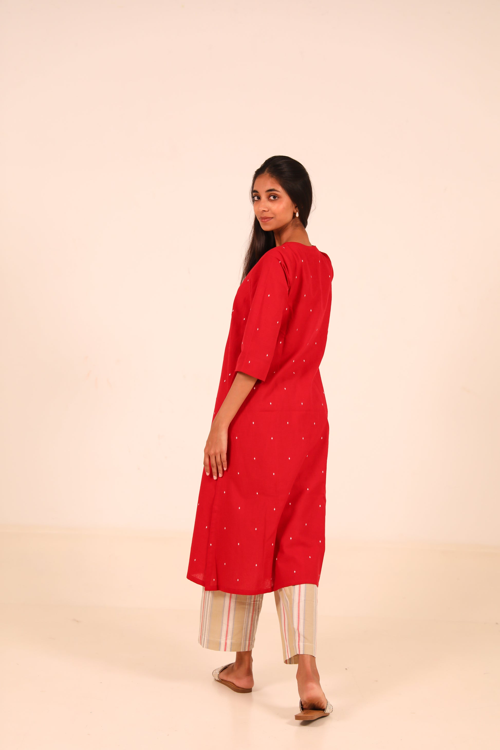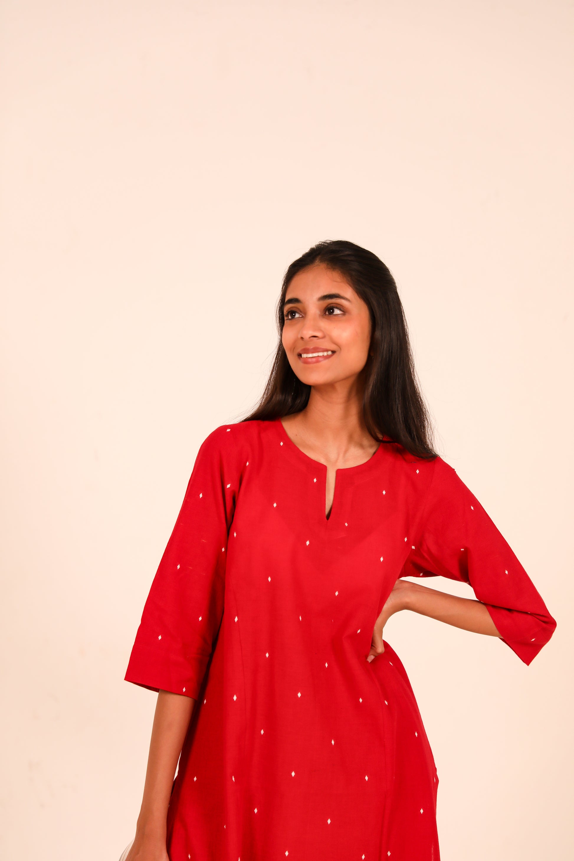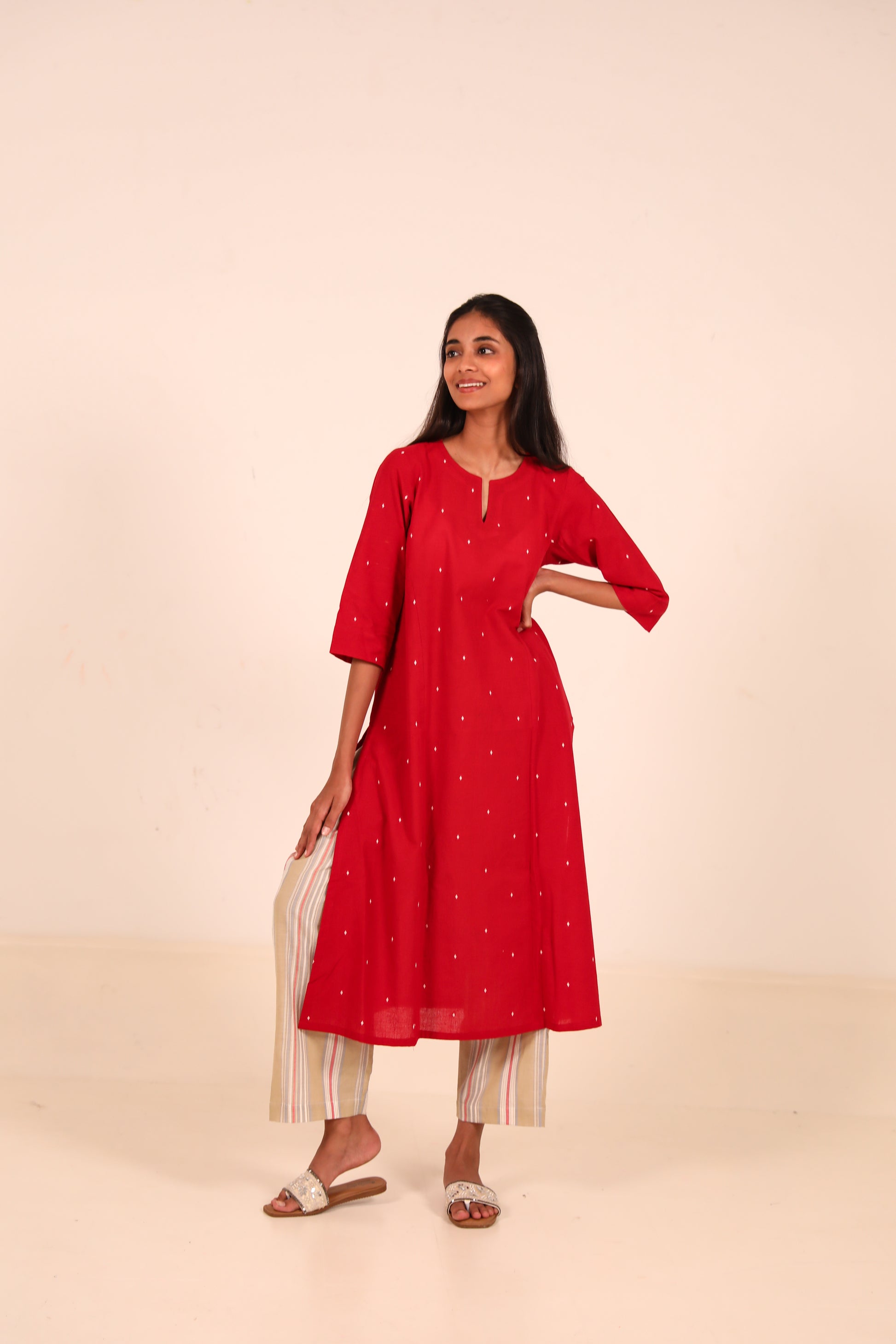 Turn up the spice in our rich red Chili Oil kurta set. With crisp tailoring, soft cotton fabric, and a statement hue, it’s a wardrobe standout.