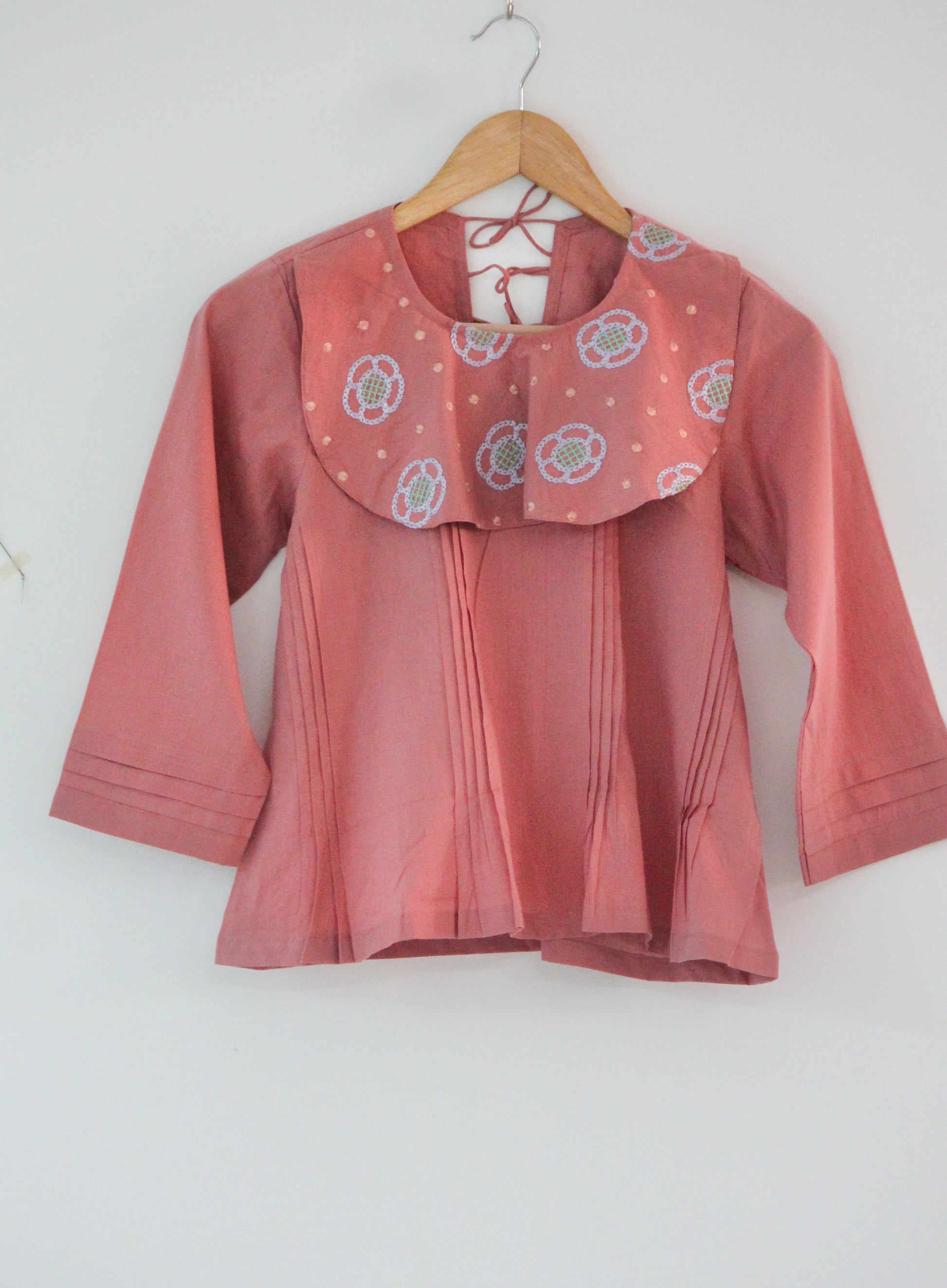 Curated with a floral embroidered flap, classic English blouse silhouette, and pintucks, this top makes a perfect mood lifter.