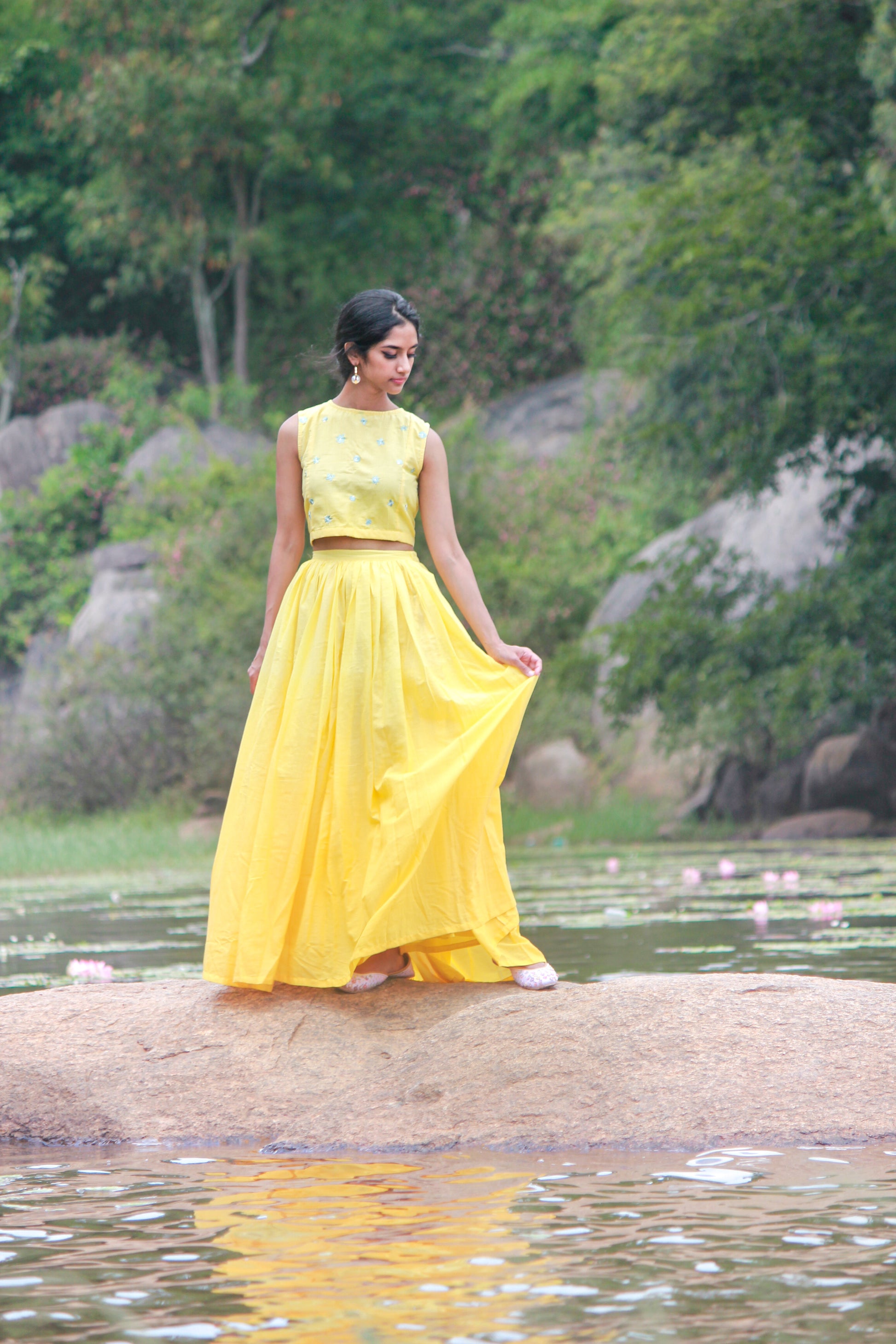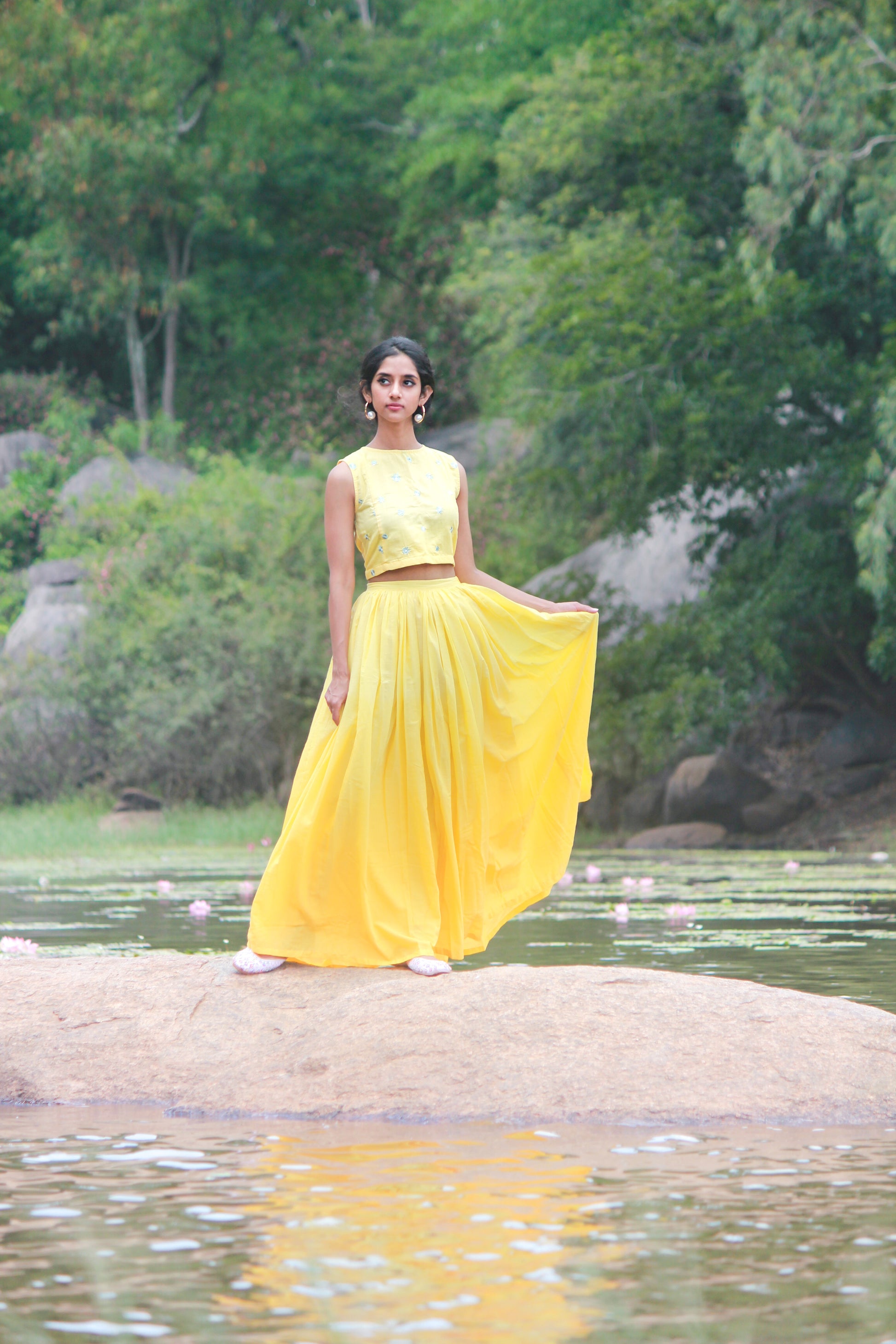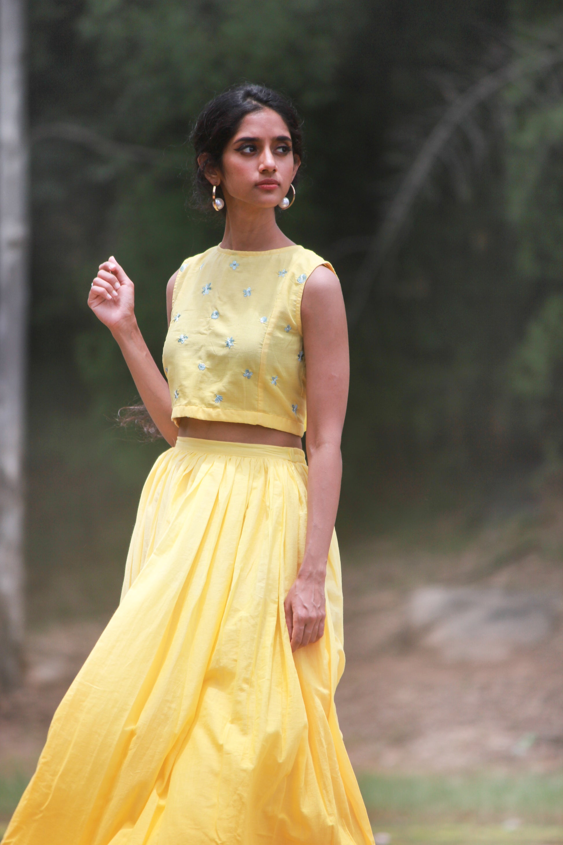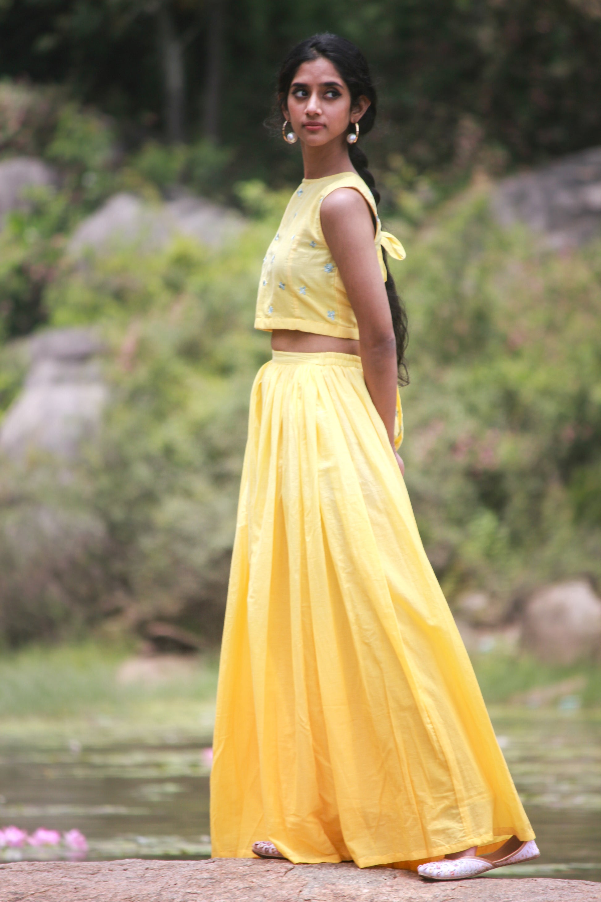 We literally are living up to living in continuous sunshine. Floral embroidery blouse aesthetically paired with our ombre skirt is truly a sunshine when needed.ย