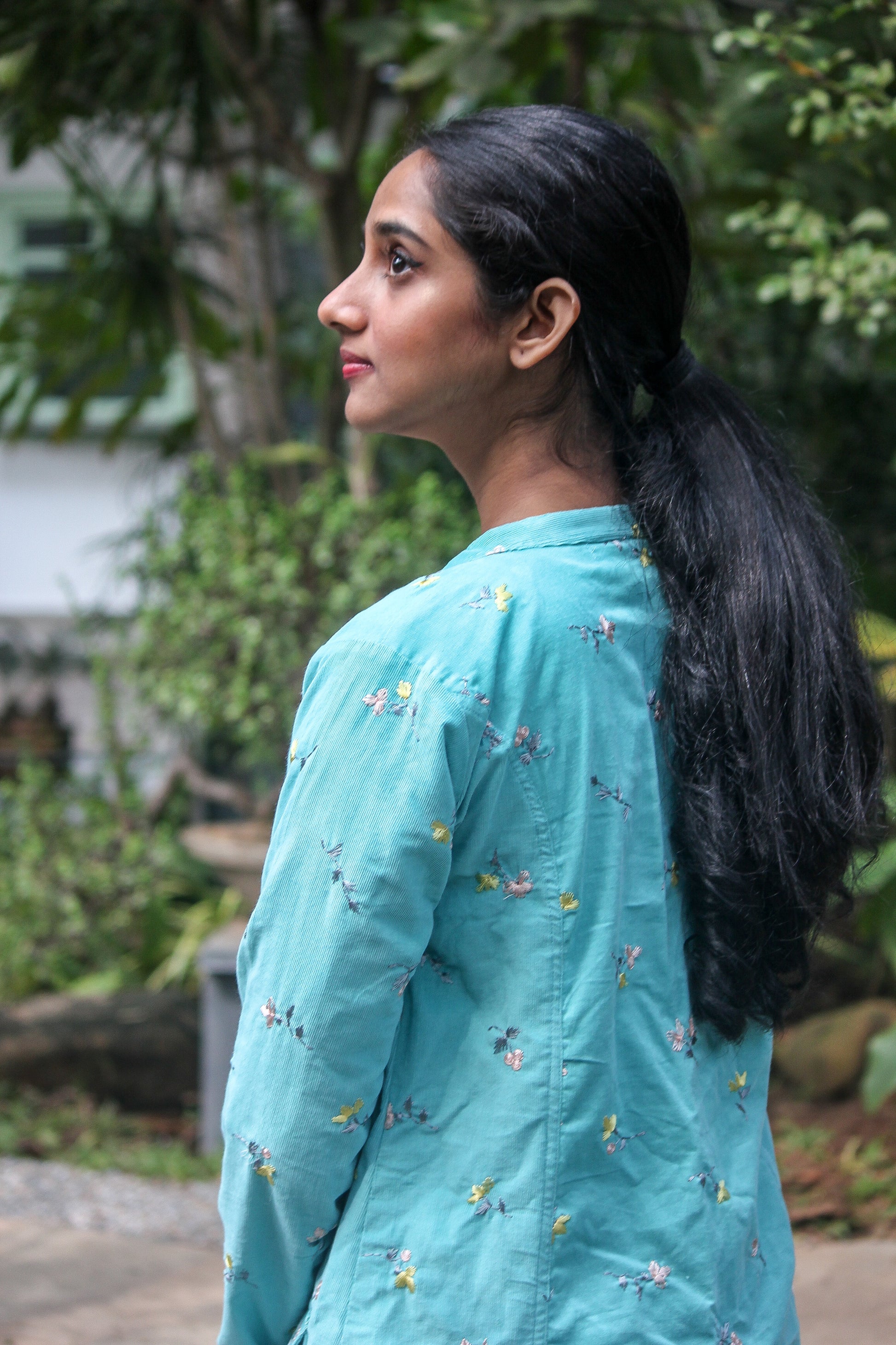 - All over floral embroidery