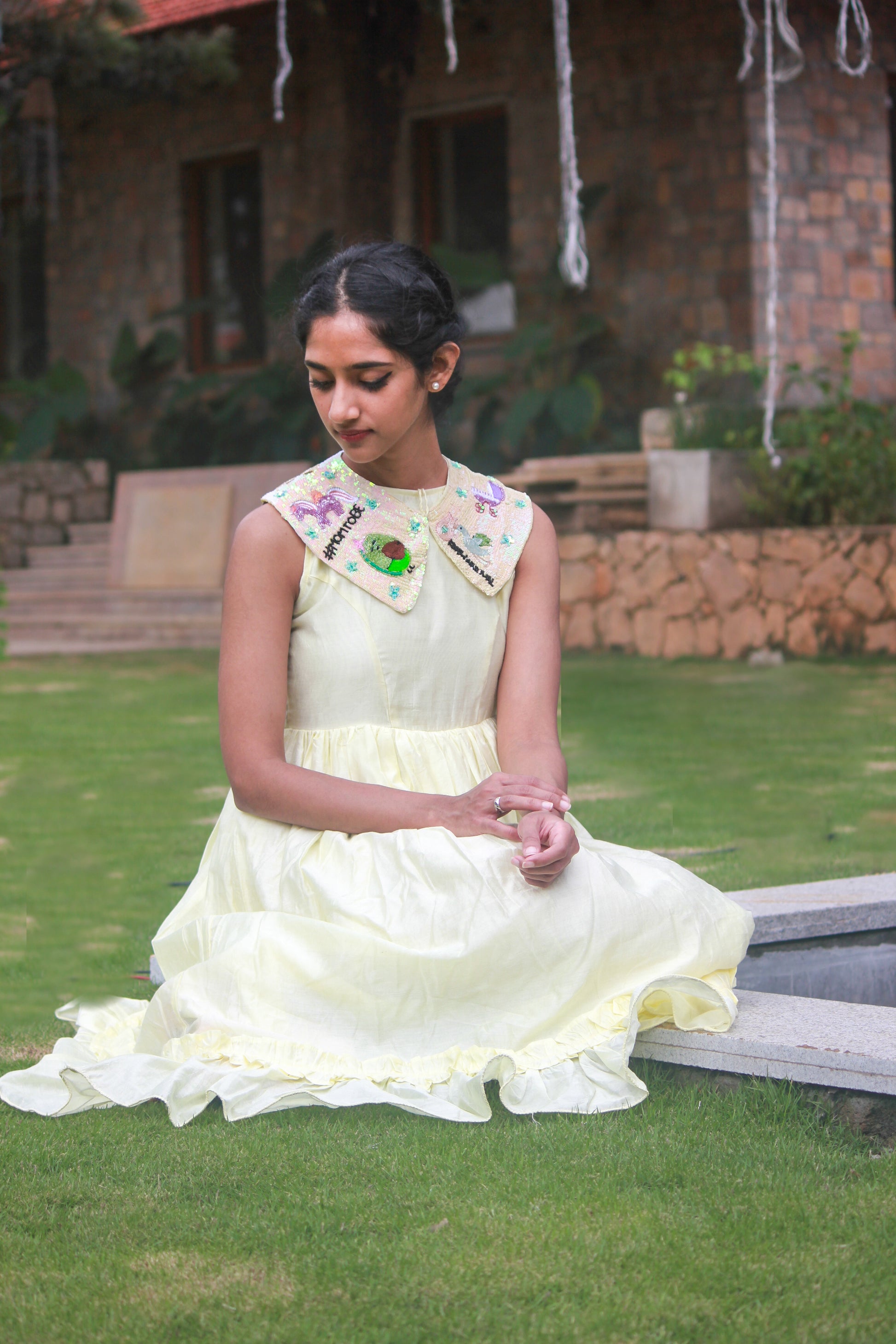 - Beautifully handcrafted detachable collar with hand embroidered intricate details of elements of motherhood.