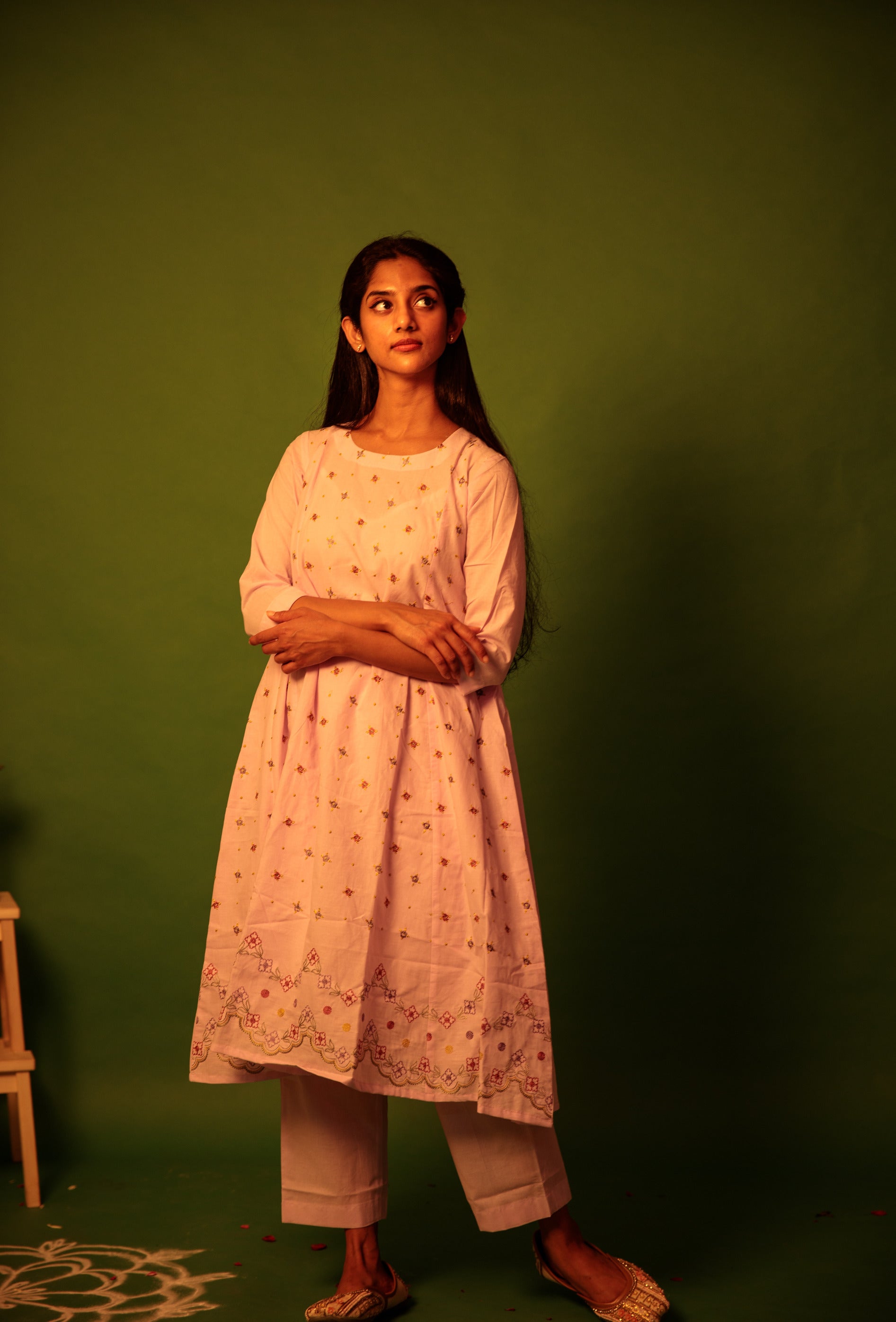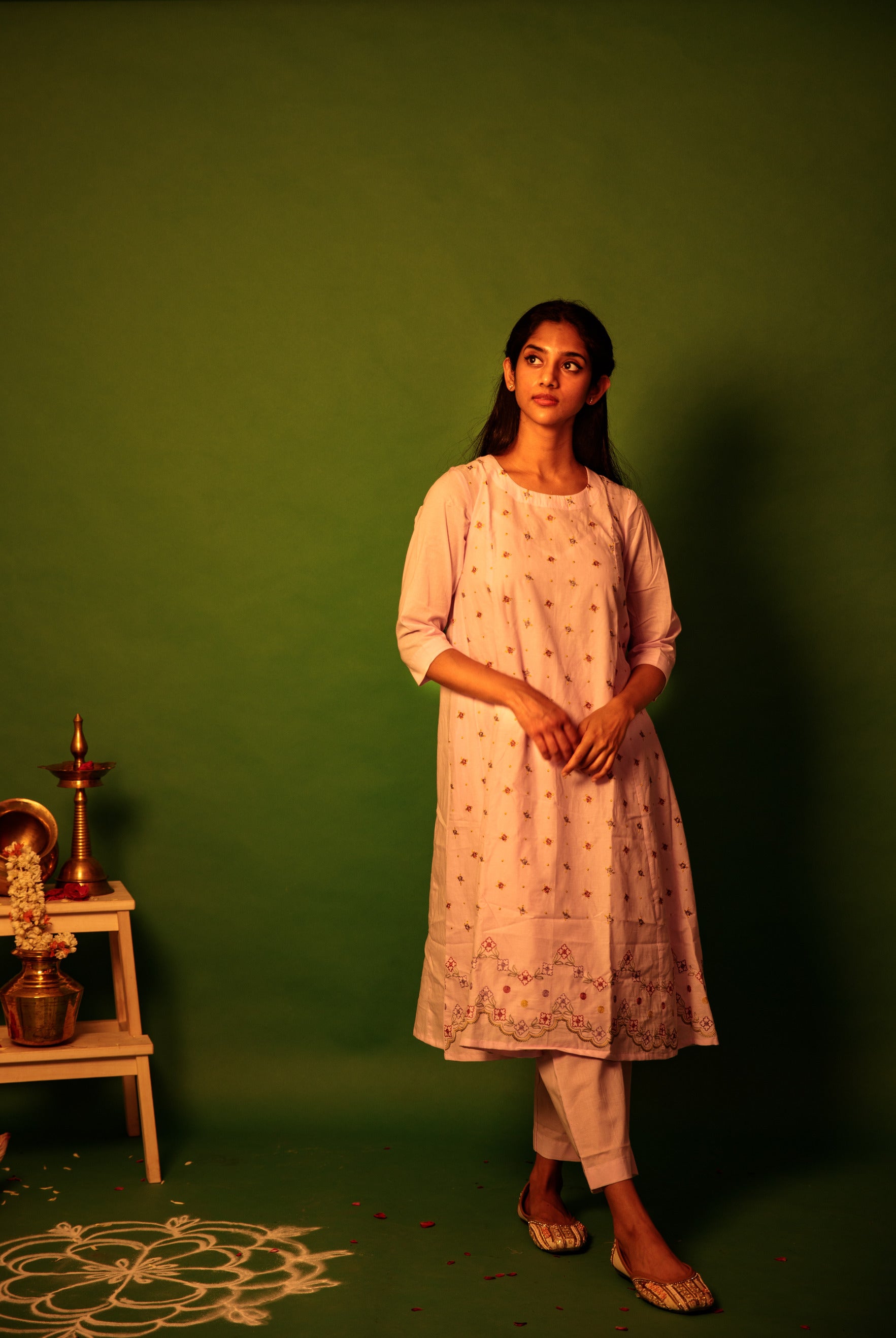 Sunlit Allium Kurta, made from softest and luxurious mul cotton, is anchored with artisanal craftsmanship in it’s embroidered details and classic neckline, perfect for a day to feel beautiful and fresh.