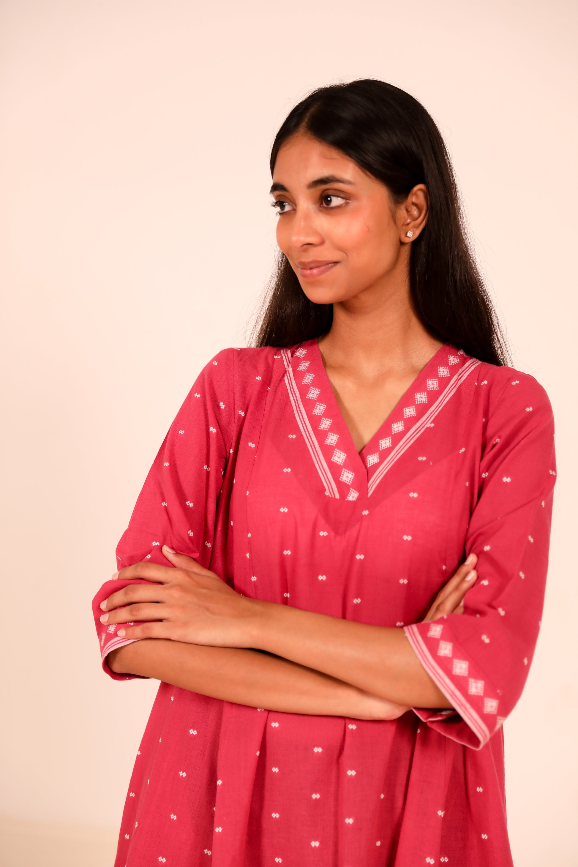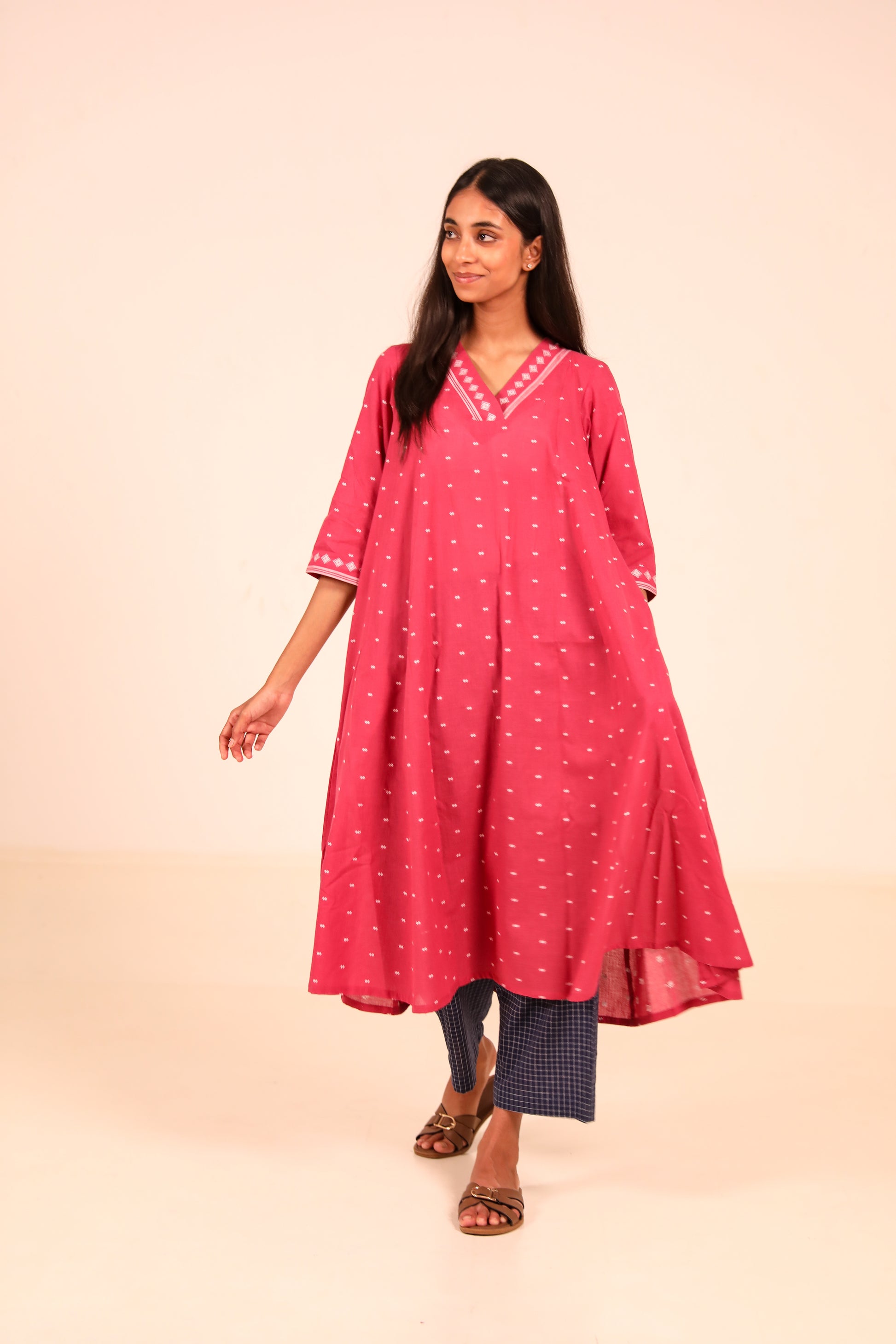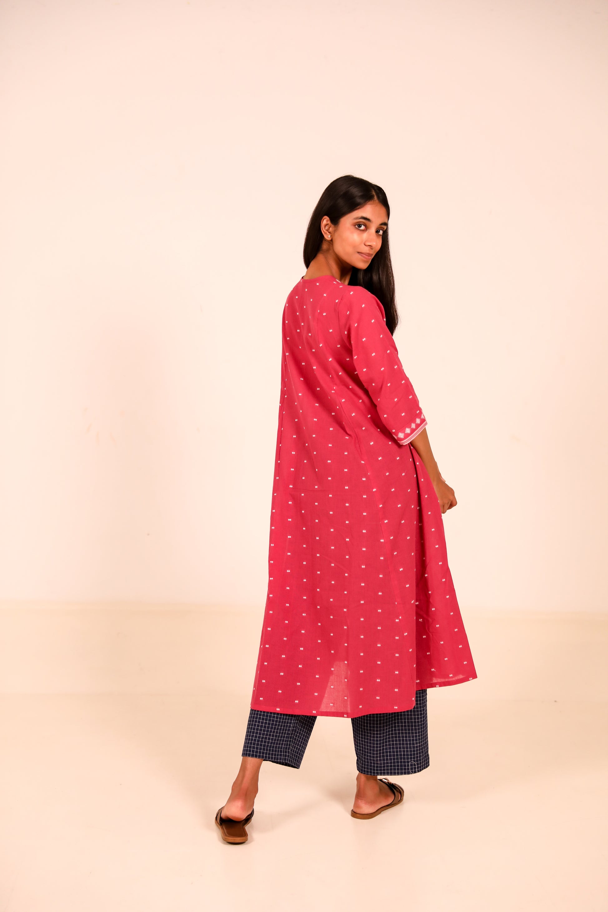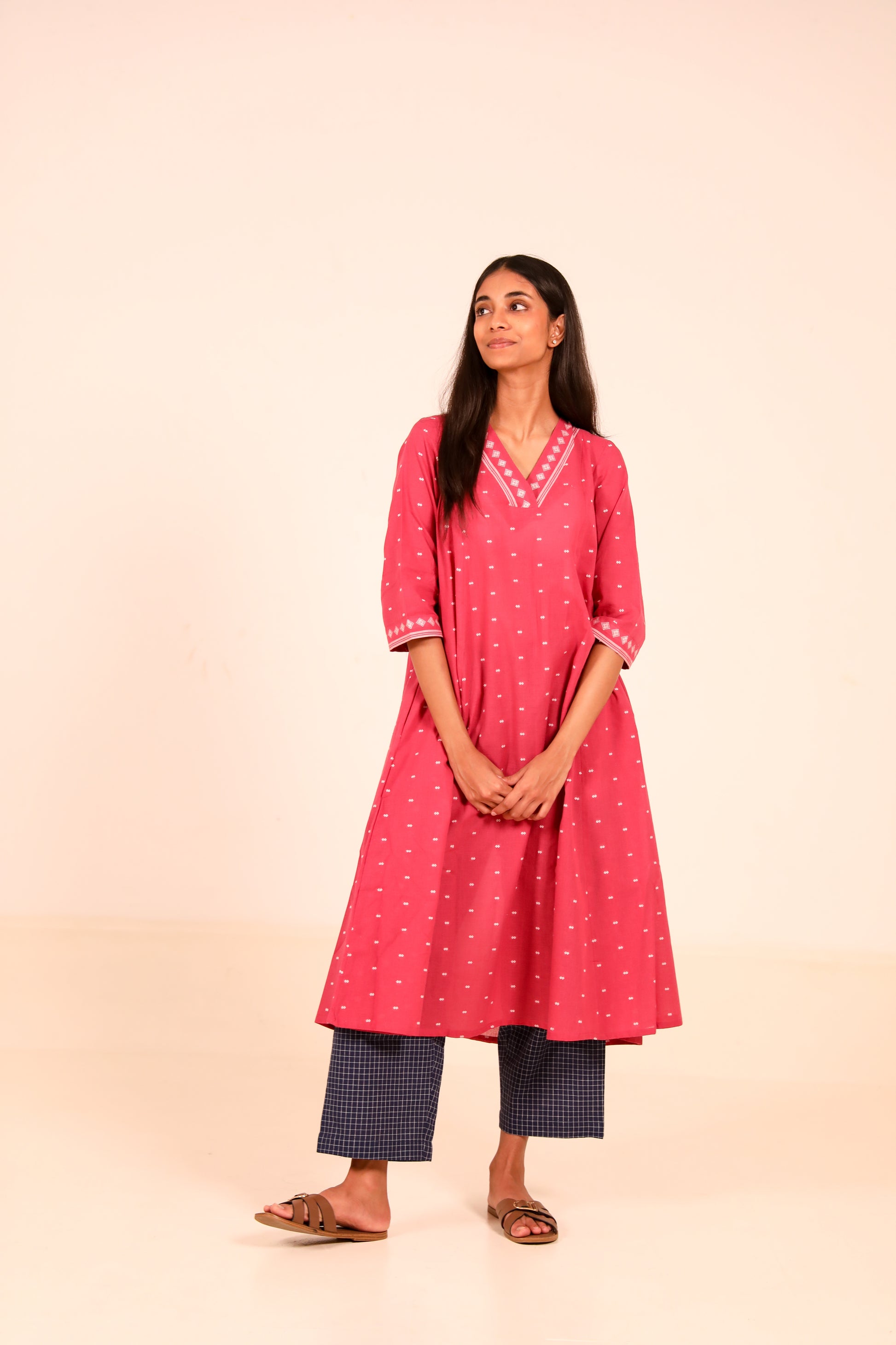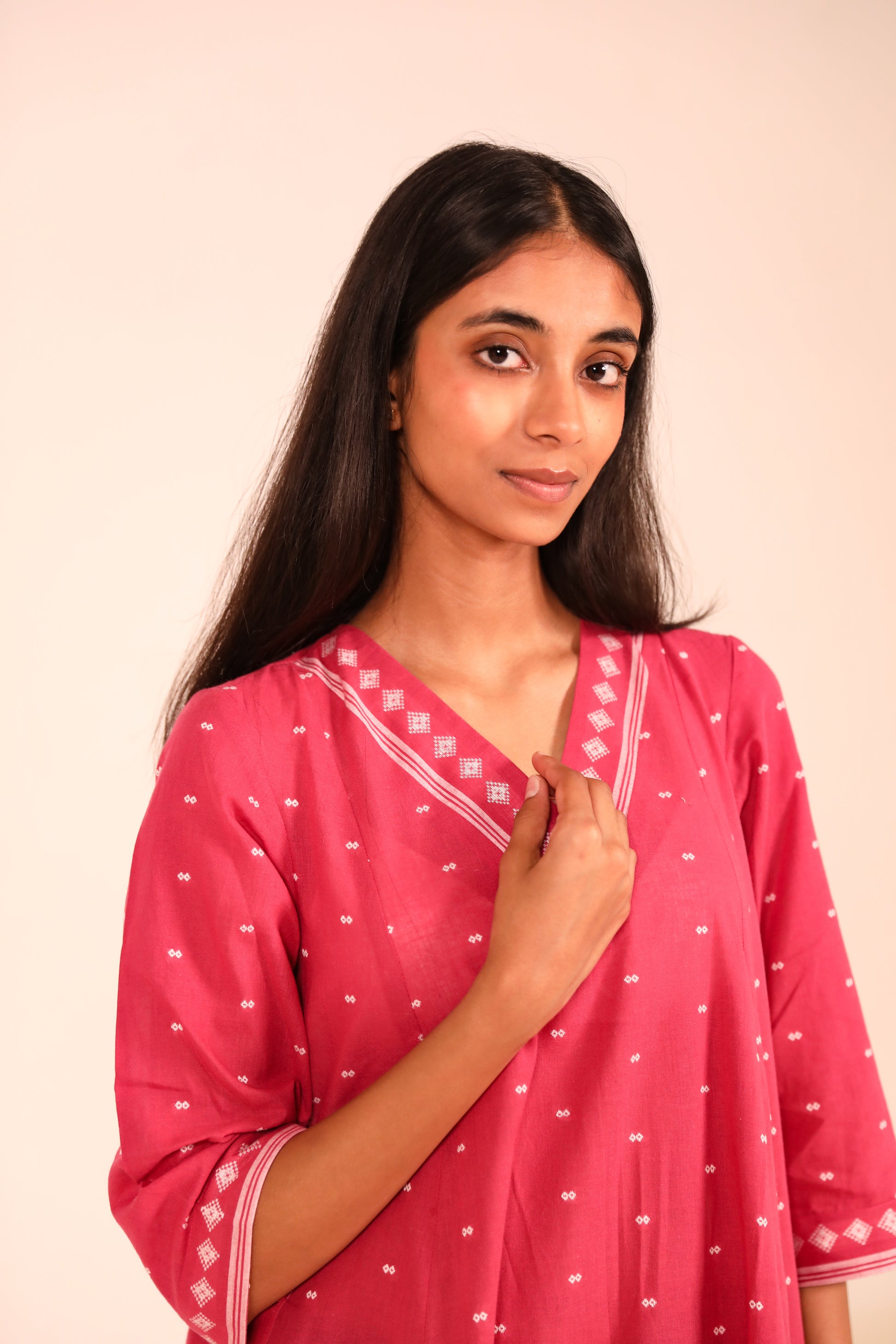 Breezy and bright, this Paradise pink kurta set brings effortless charm to your everyday look. Comes with roomy pockets and matching elasticated pants for all-day comfort.