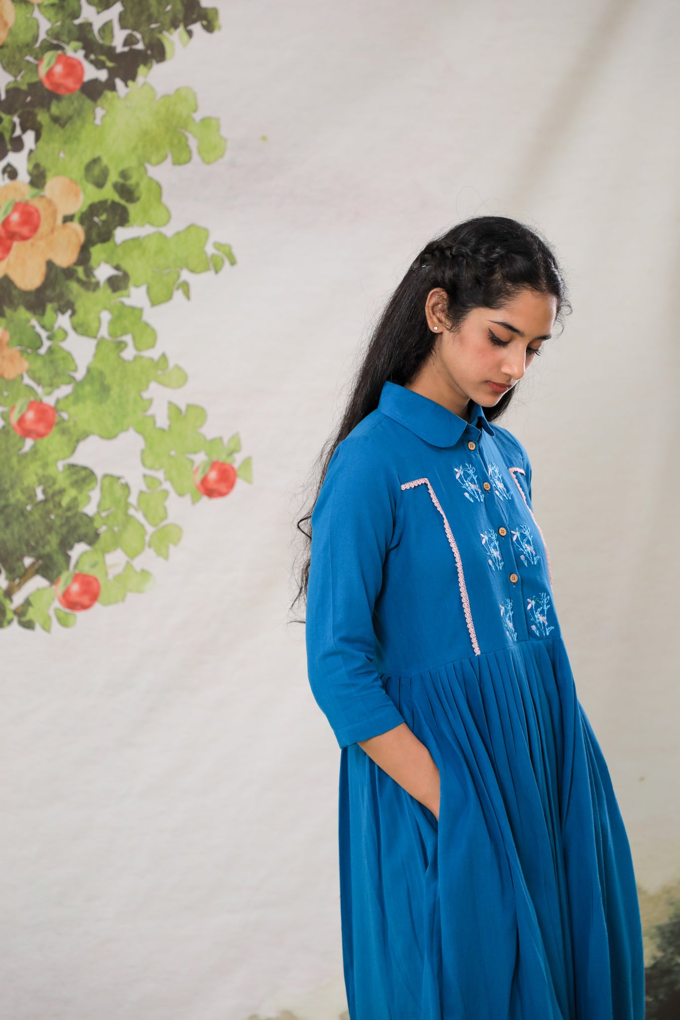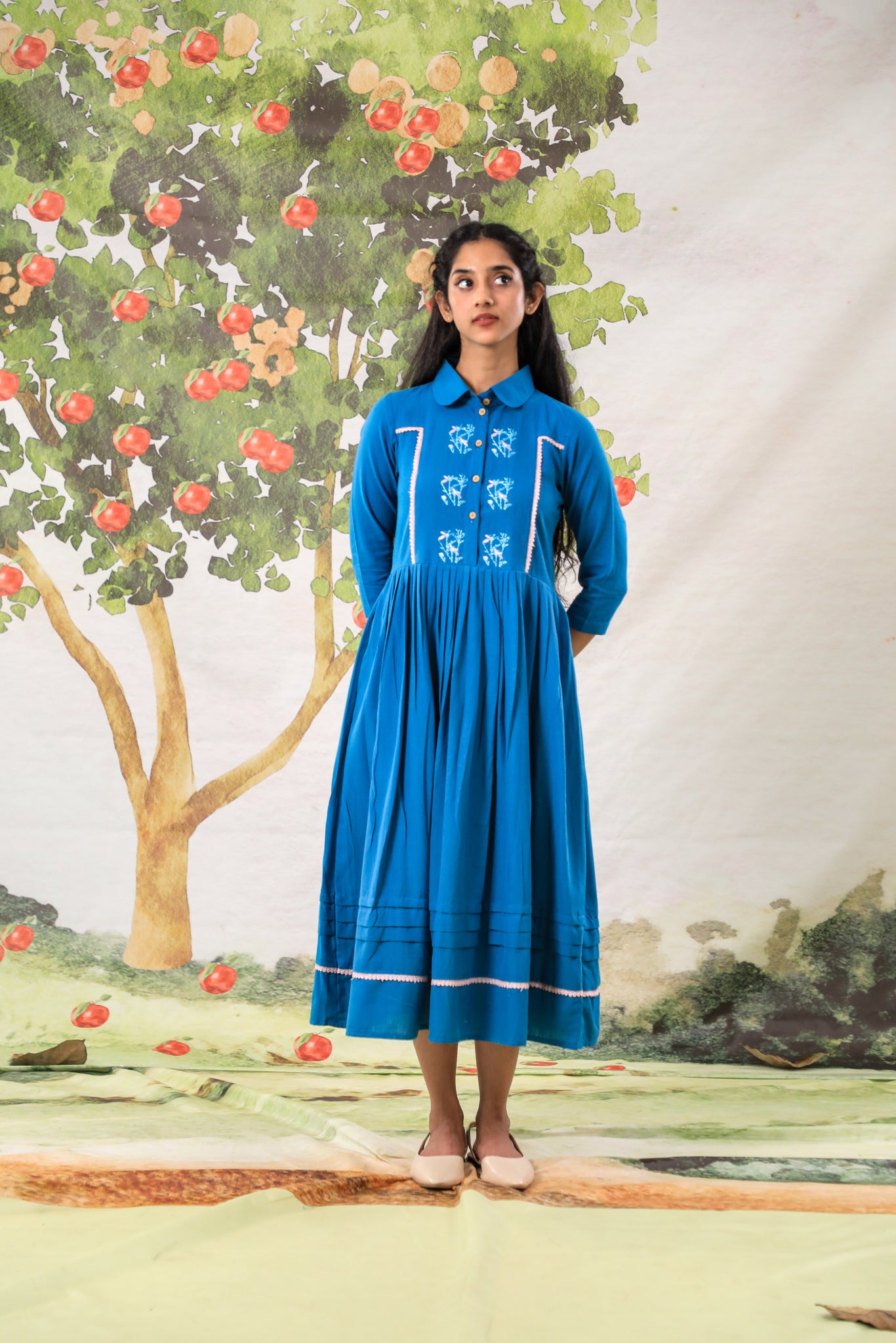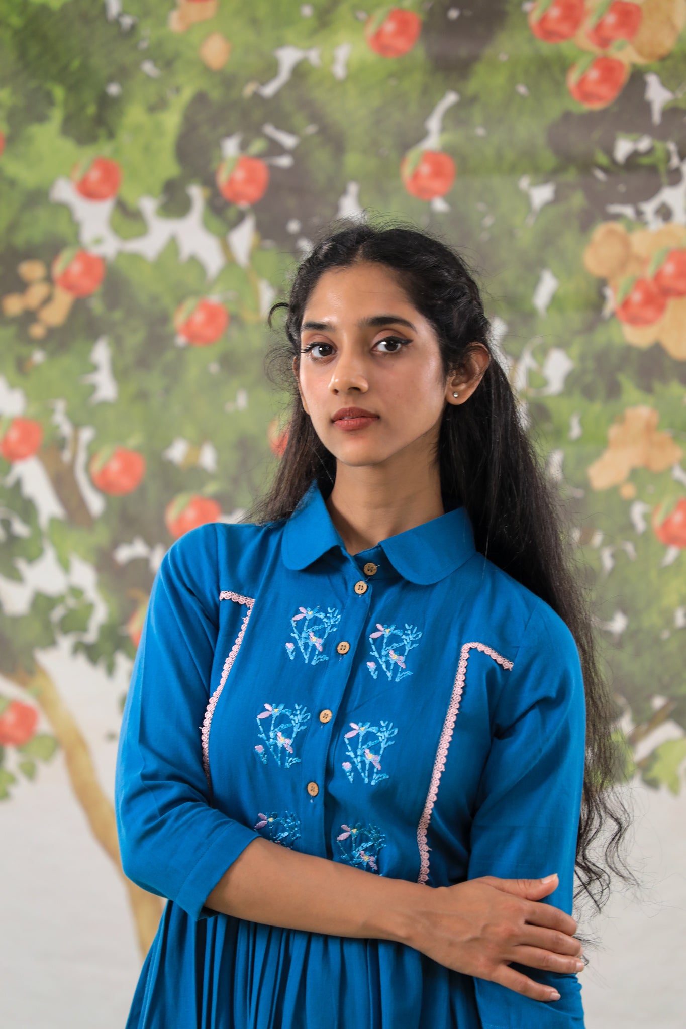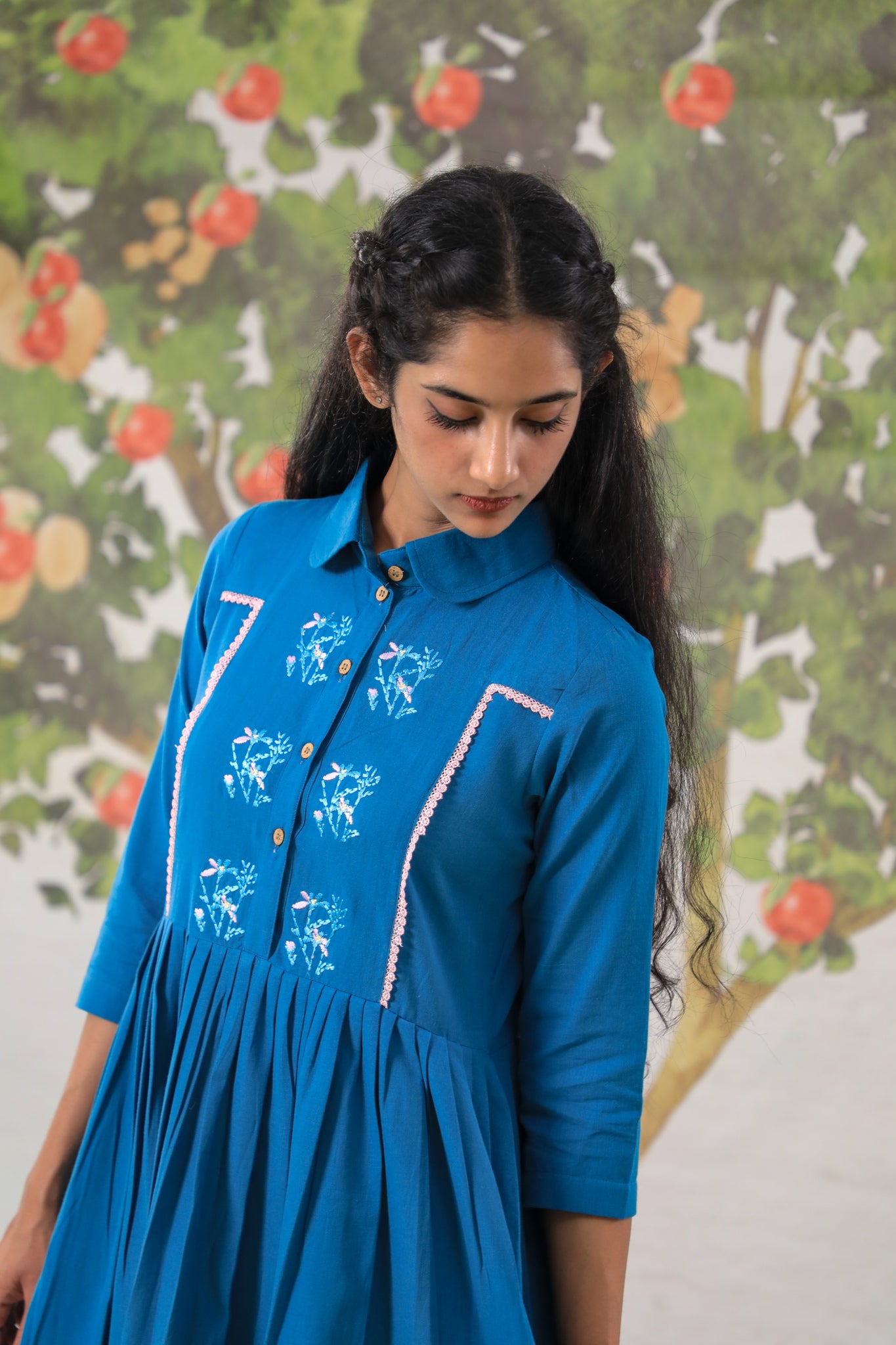 Look effortlessly stylish in our Serenity Shirt Dress. This lovely dress features a classic button down shirt pattern, in a beautiful shade of blue, with stunning floral lace detailing on the bodice and skirt. Its easy styling and comfortable wear make it perfect for both the office and weekend fashion.