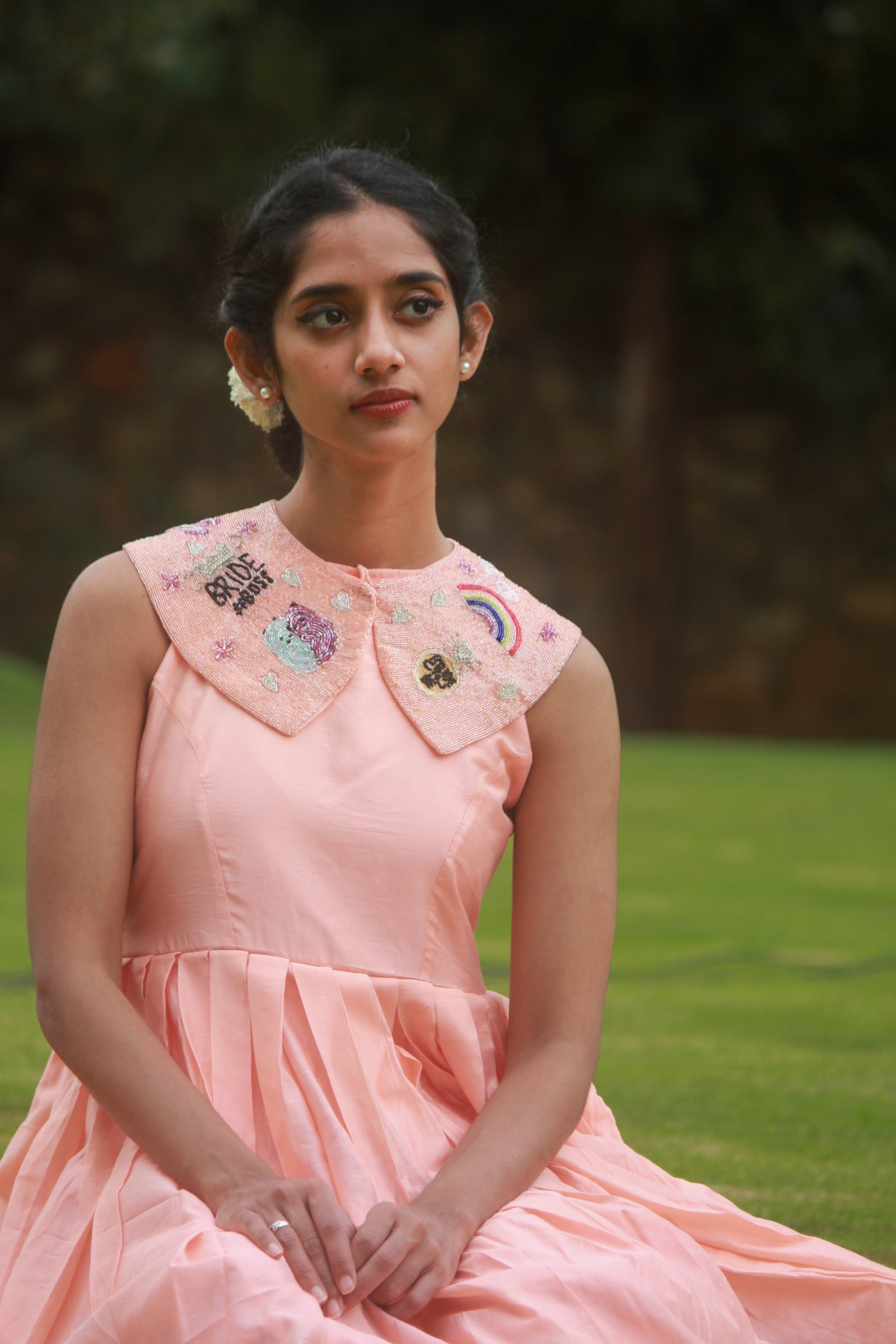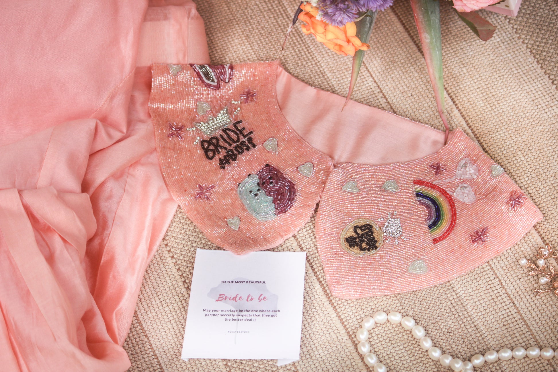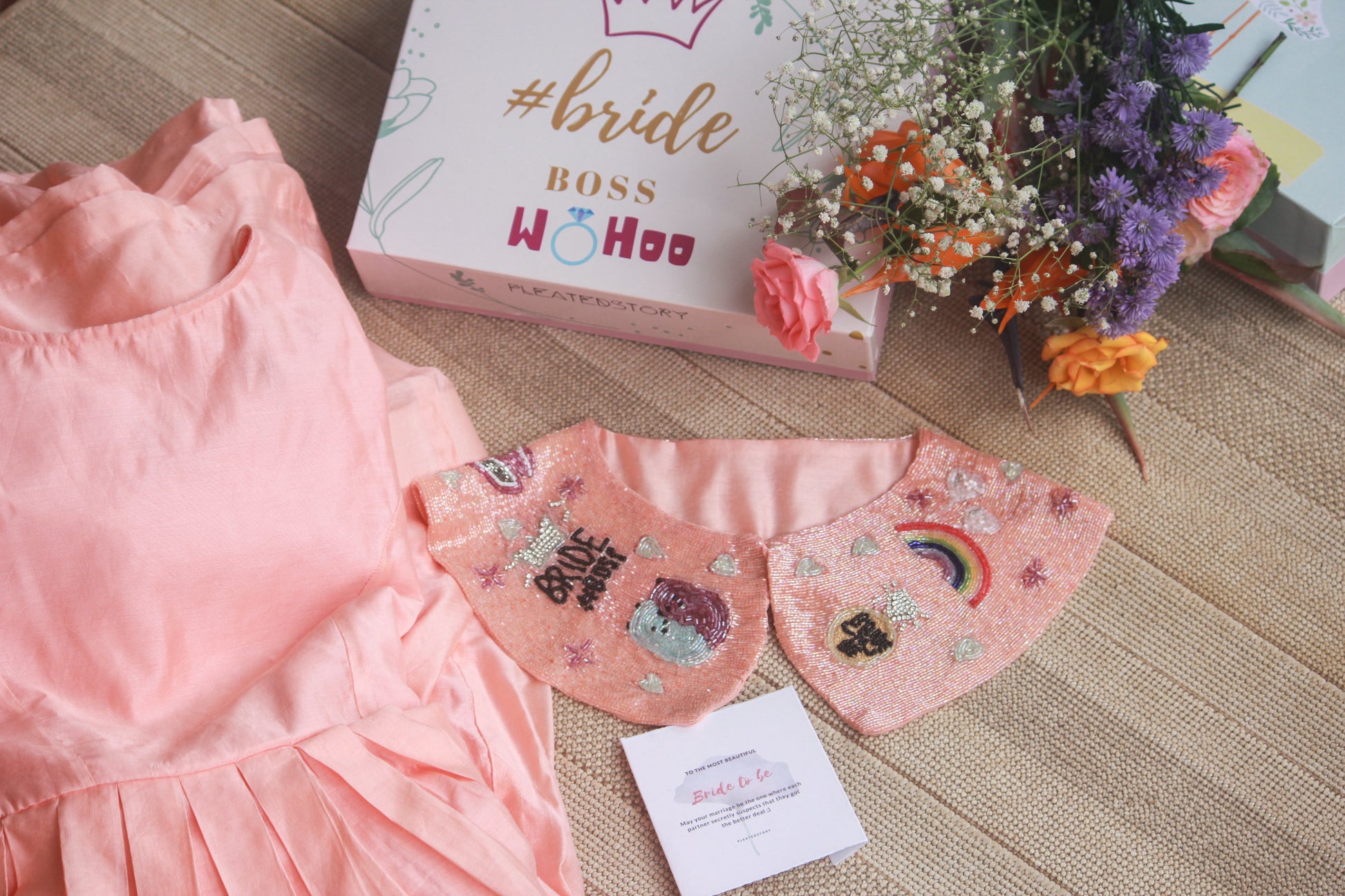 Bride to be is a title so special and very close to heart. It's a memory for lifetime and she wouldn't want anything less than beautiful. This beautiful Bride Boss box has beautiful, carefully handcrafted detachable collar featuring elements of wedding along with it stunning dress made of luscious Chanderi silk fabric and to make it special, it also has a special wish for our most beautiful bride to be's from all of us at Pleated Story.Β
