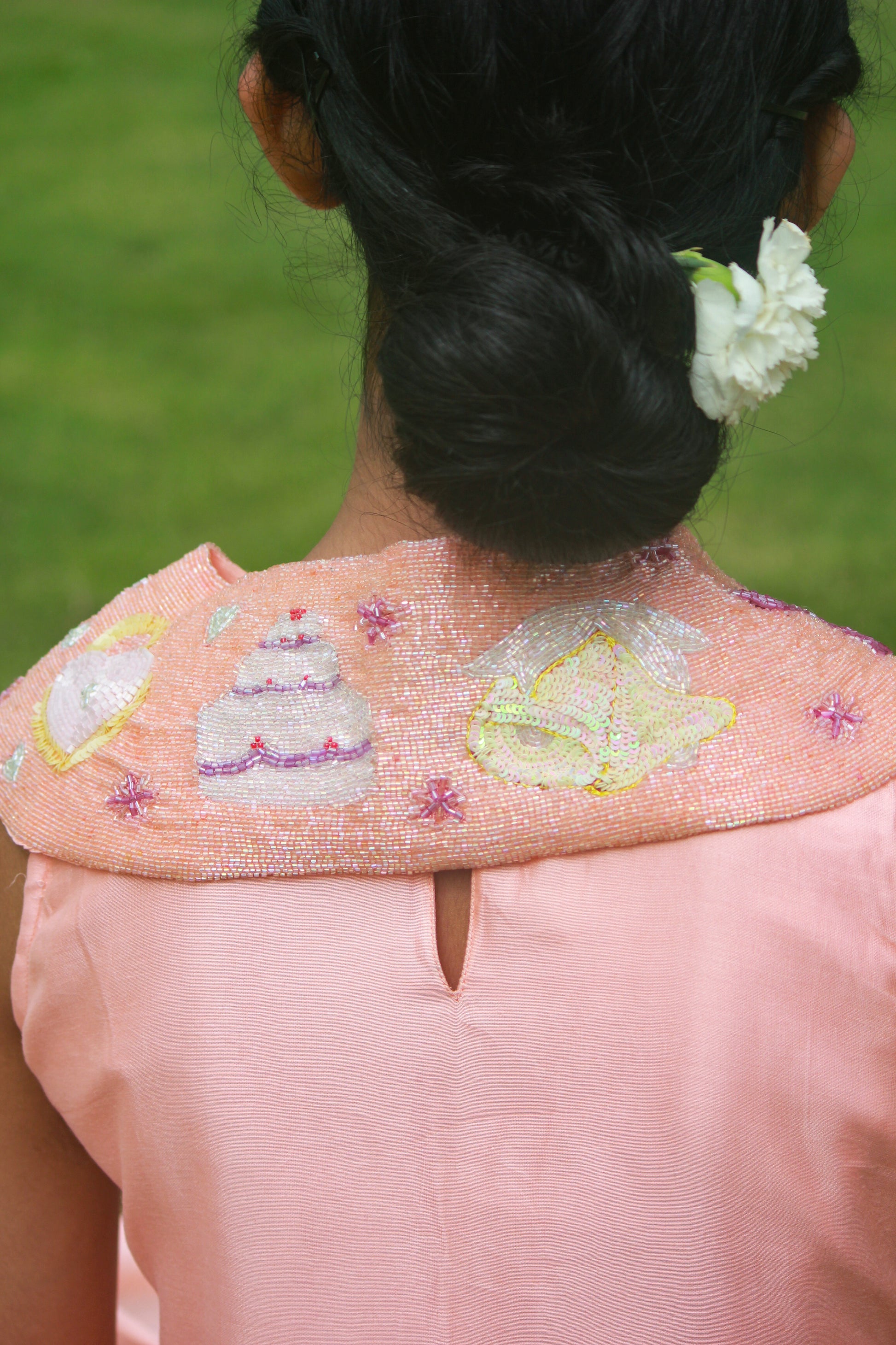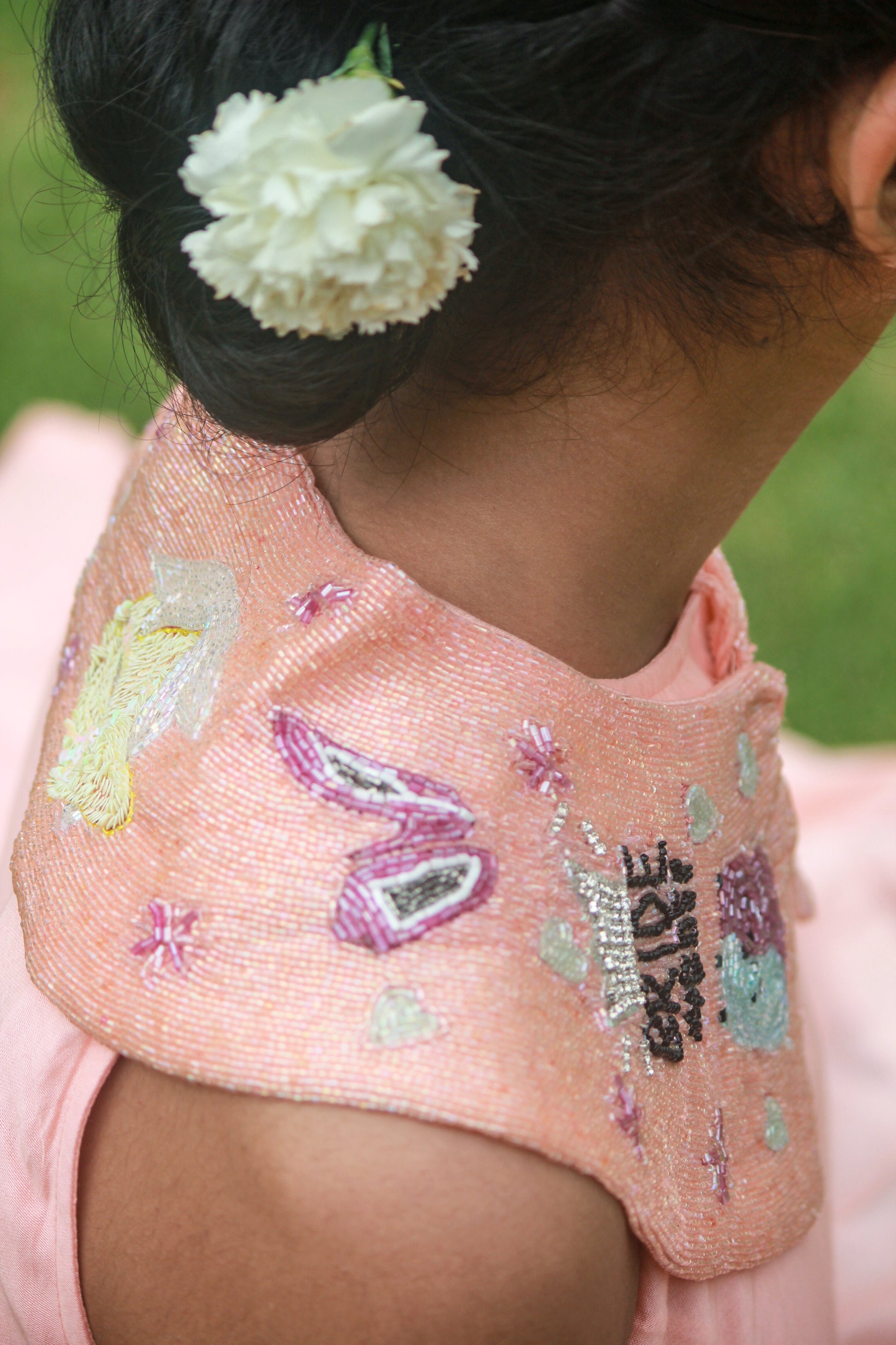 β’ Beautiful handcrafted detachable collar with hamd embroidered work of wedding elements.