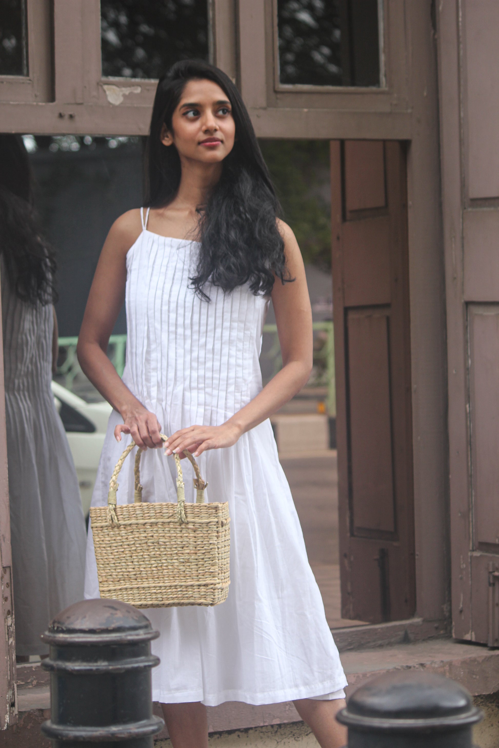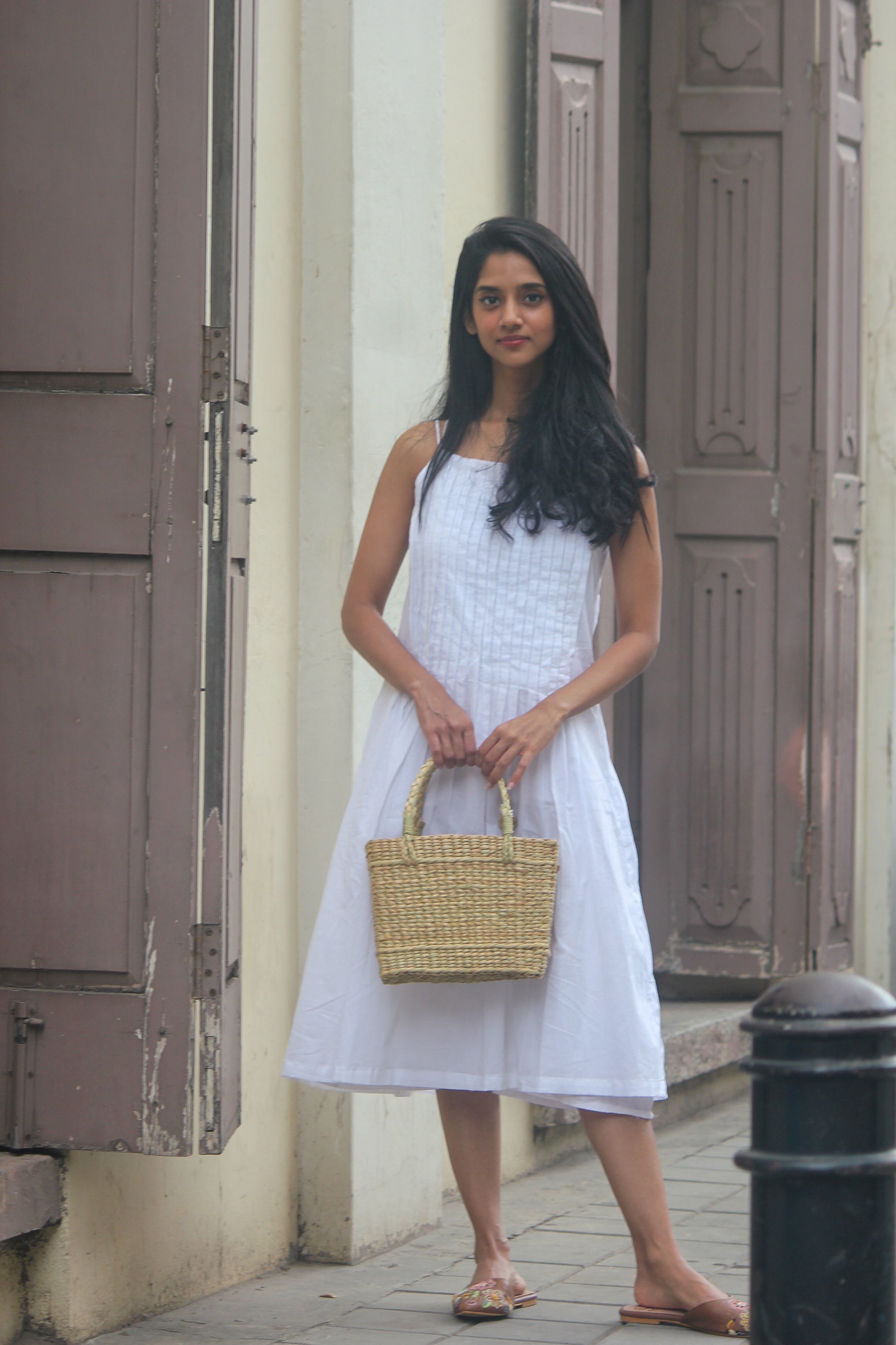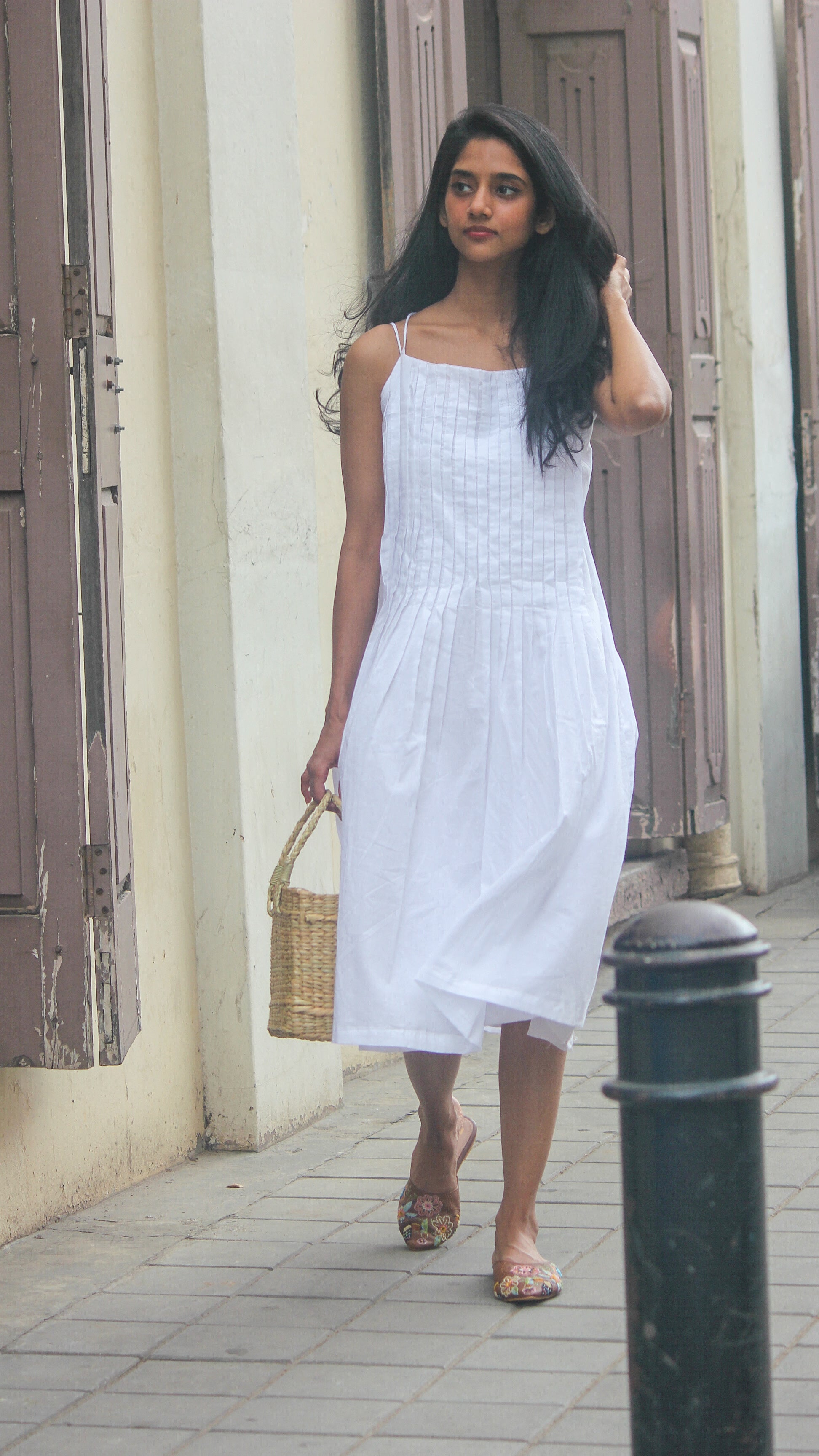Nothing surpasses plain white with exquisite pin-tuck details and the simplicity of an A-line cut.