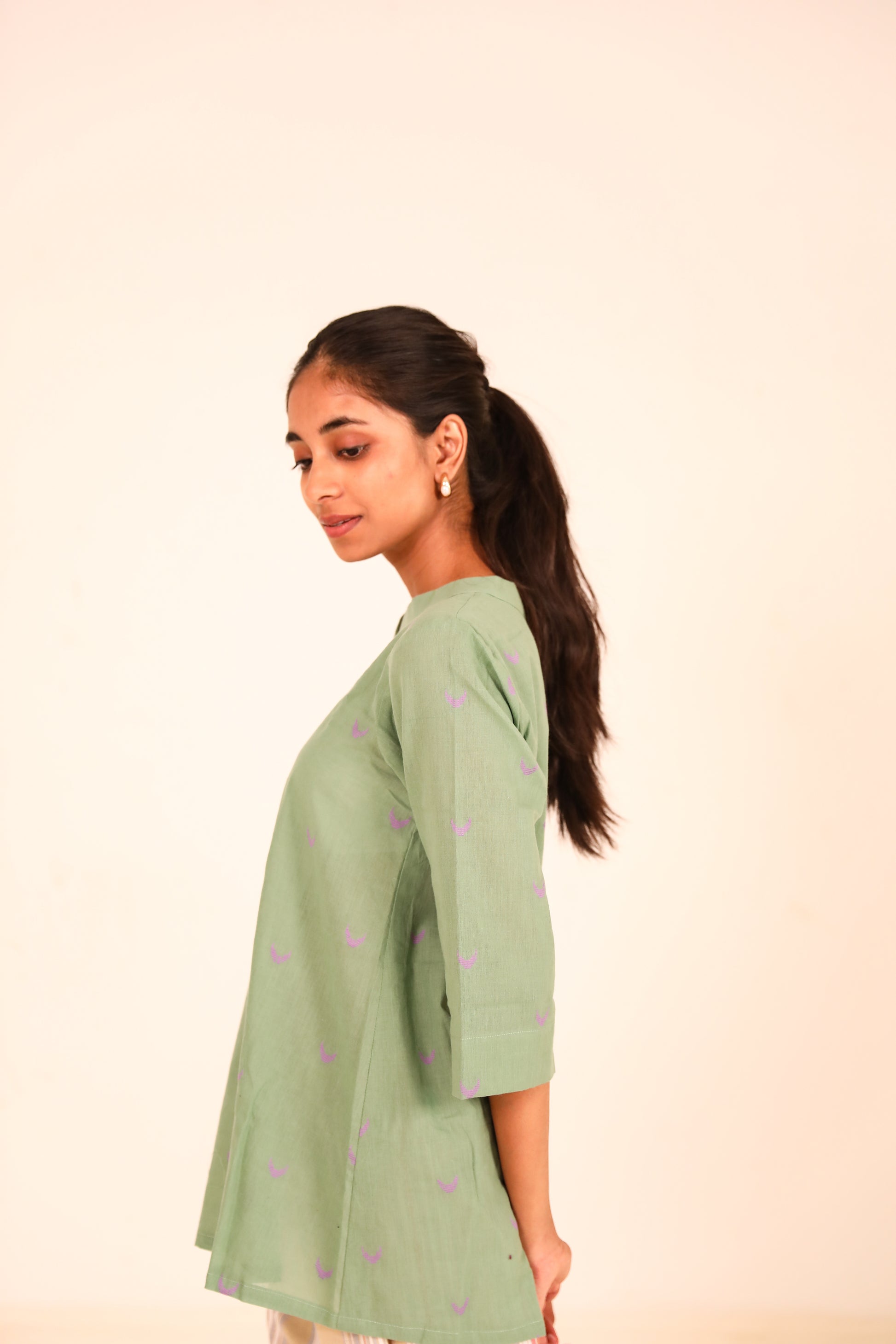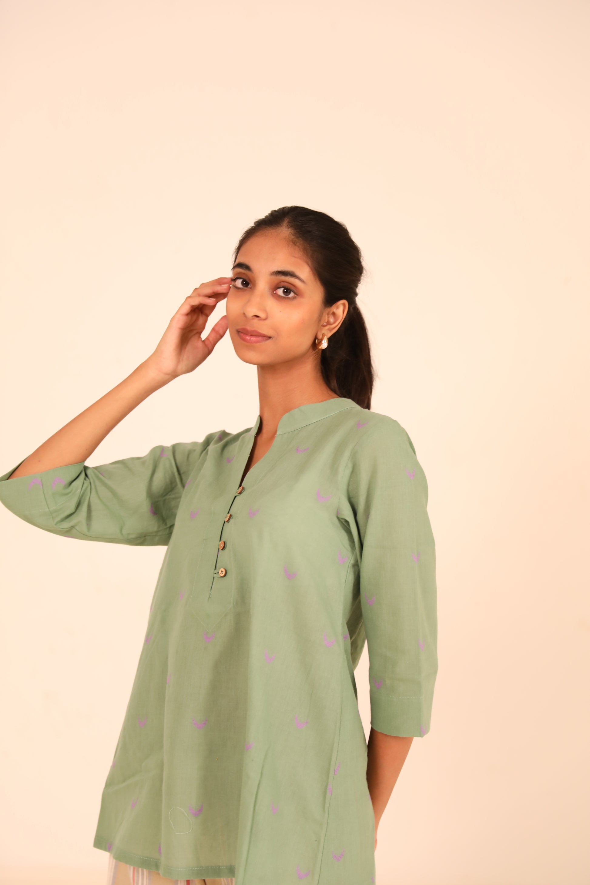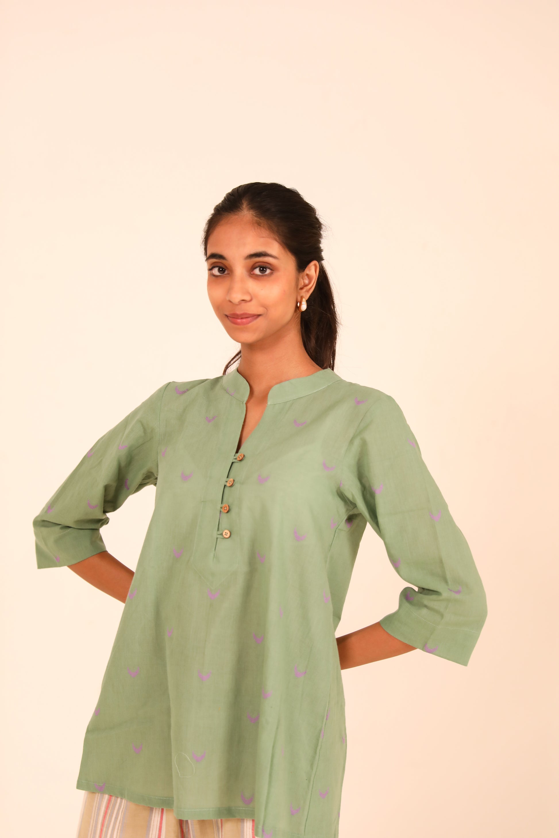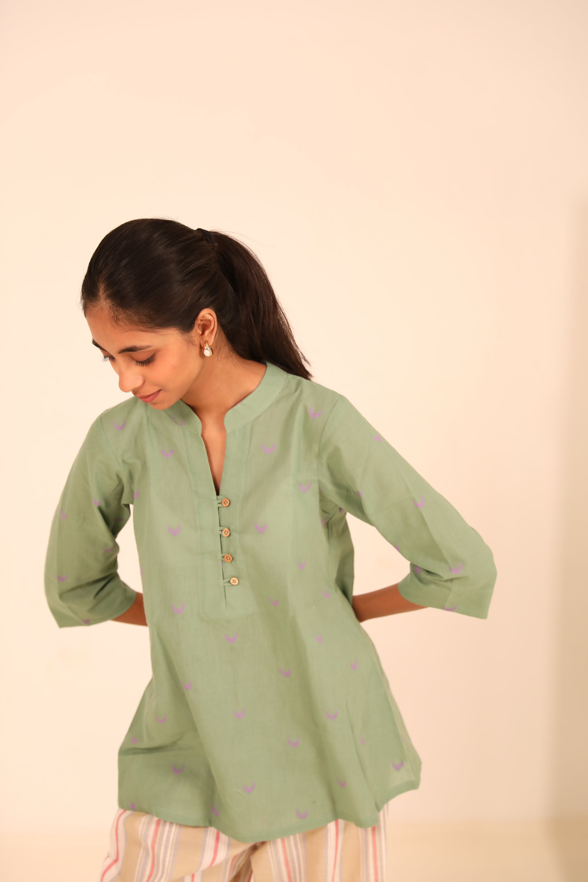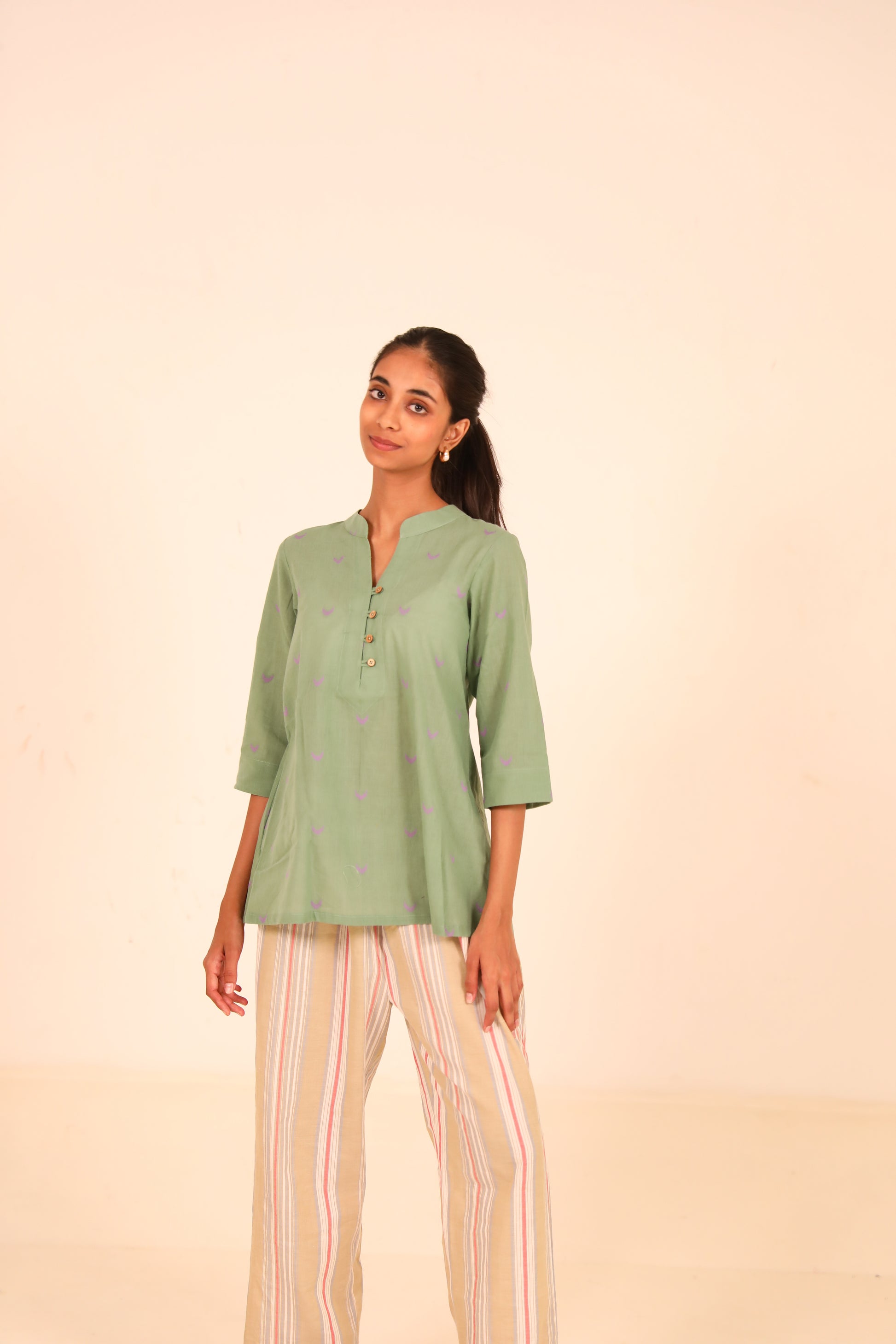 A calm, refreshing hue meets timeless comfort in our Winter Pear cotton top. Light, breathable, and easy to pair—your everyday essential for effortless dressing.